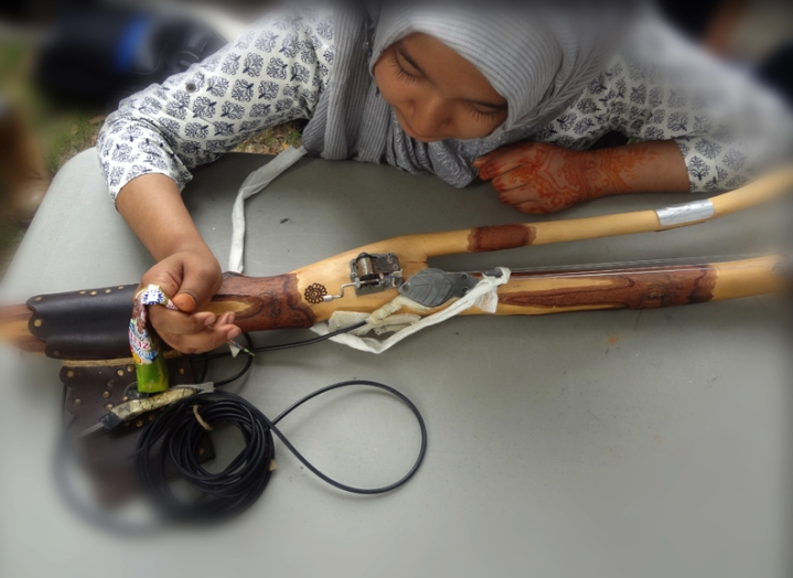 One day I held one of the larger tree branches and tapped it, I heard a tone. I wondered, how can I amplify that? I bought a microphone, rented an amplifier and tied the microphone to the branch. Hmmm, what else can I try? The solution arrived on a visit to Long and McQuade’s music store where I discovered “piezo sensors” or, “pick-ups”. Acoustic guitarists stick them on their guitar to amplify the strings, sort of like an electric guitar. I carved out a hole in the branch, inserted the piezo, plugged into the amplifier and anywhere I tapped, EUREKA!! Eventually I bought a guitar FX pedal and began my musical journey.