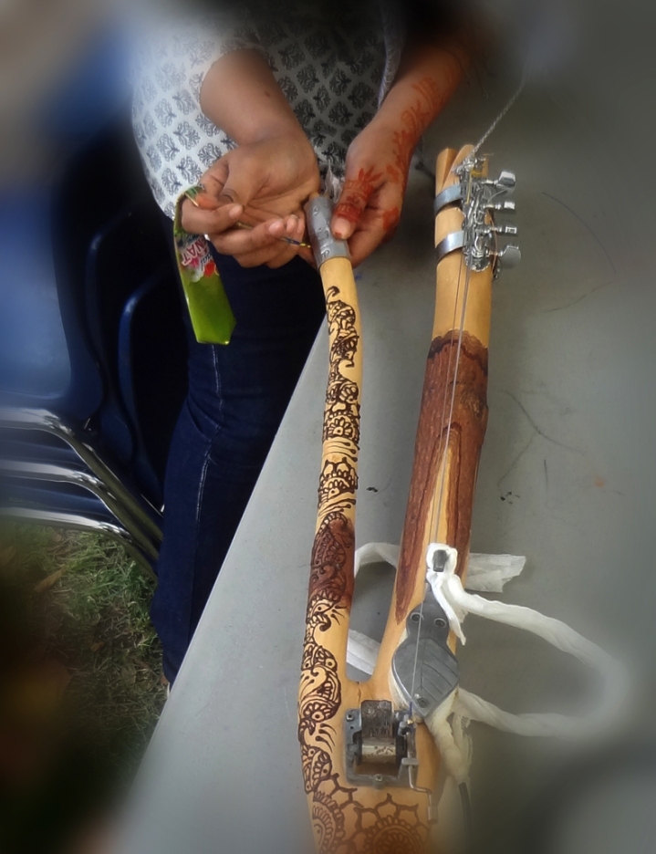 But if not, I don’t want you to miss this very sacred moment I experienced. I was intending to busk at an arts festival, but as usual my fear held me back. About to go home, disappointed in myself, I saw these girls doing henna for free. Hmmm….so I asked one girl if she could henna the branch. She was everso excited. Well, my fear manifested into this moment. I tipped her generously and got the teacher’s email to forward photos. I asked her to add her name. However, unbeknownst to both of us, it didn’t dry for three days! And I had to carry it so, so carefully to and on the bus and subway to get home without smudging! Thank you dear, Techiohe!