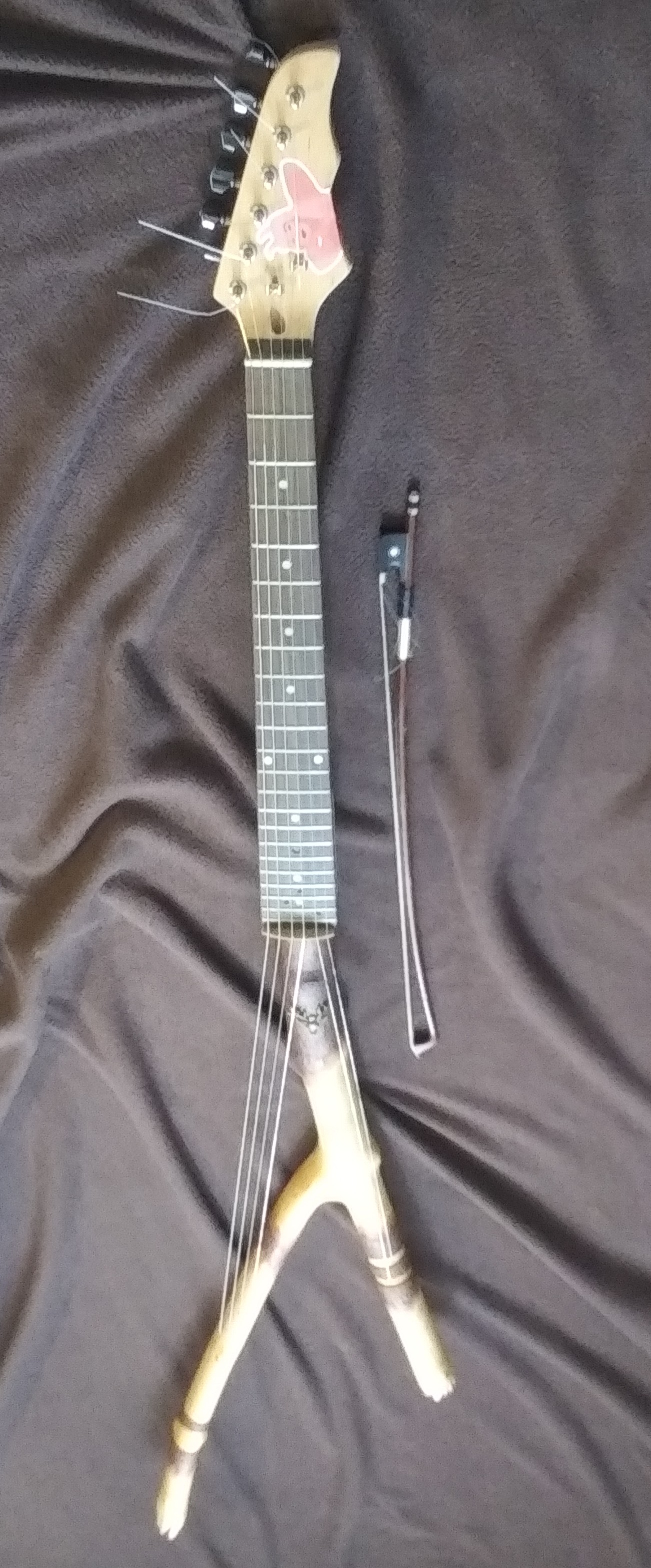 But I wanted to bow it like a violin, so I added an arched bridge. I guess its more a guitarolinbranch.