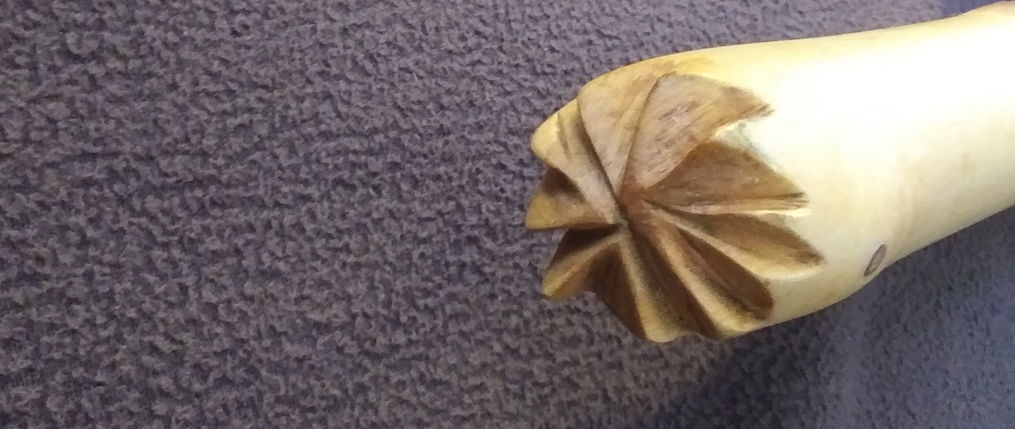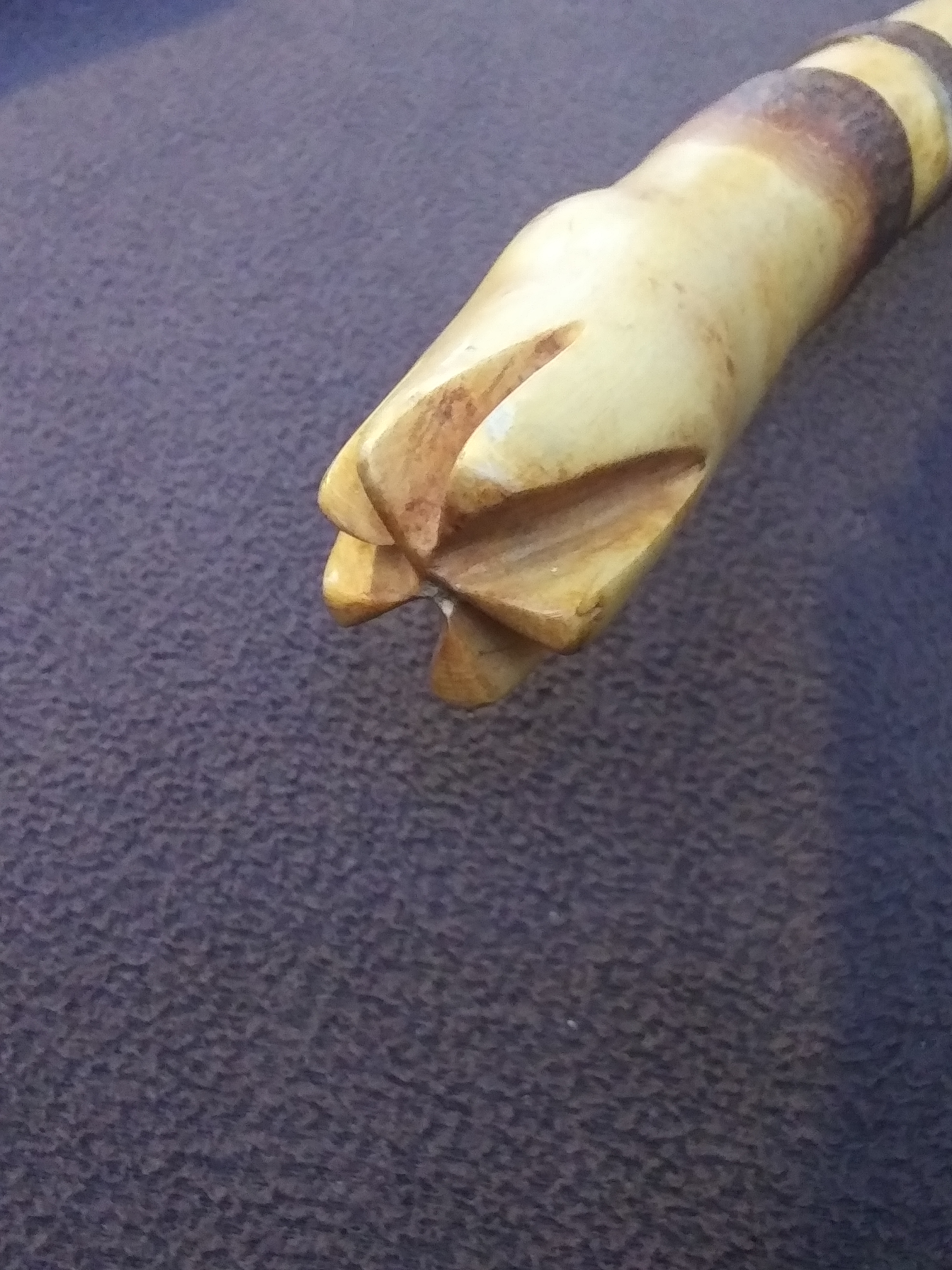 This carved tree branch with five other similar ones, becomes the fourth branch instrument.